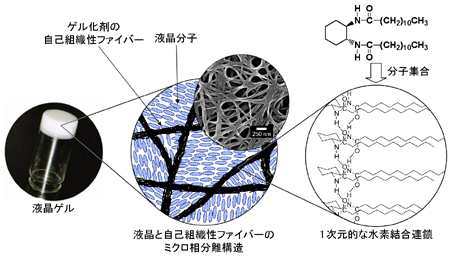 我々は、普通の溶媒のかわりに機能性流体である液晶を低分子ゲル化剤を用いて